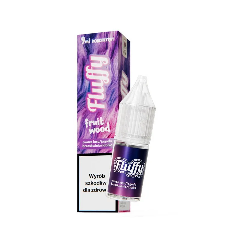 Longfill FLUFFY 9/10ml – Fruit Wood to wielowymiarowa kompozycja smakowa łącząca soczyste owoce leśne, słodką brzoskwinię, dojrzałą jagodę i chrupiące jabłko. Równowaga między owocową słodyczą a lekką kwasowością tworzy złożony i orzeźwiający profil smakowy.
